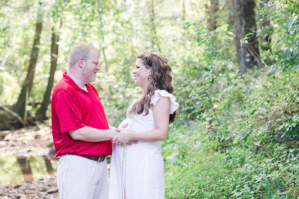 Kara told me she was wearing her mom’s wedding dress for her maternity photos and I was not quite sure what to expect until she showed it to me. Her moms wedding dress showed off her precious bump in all the right ways. When they arrived at Yates Mill for their session, I was blown away at how perfect she looked in it and loved how meaningful it was.